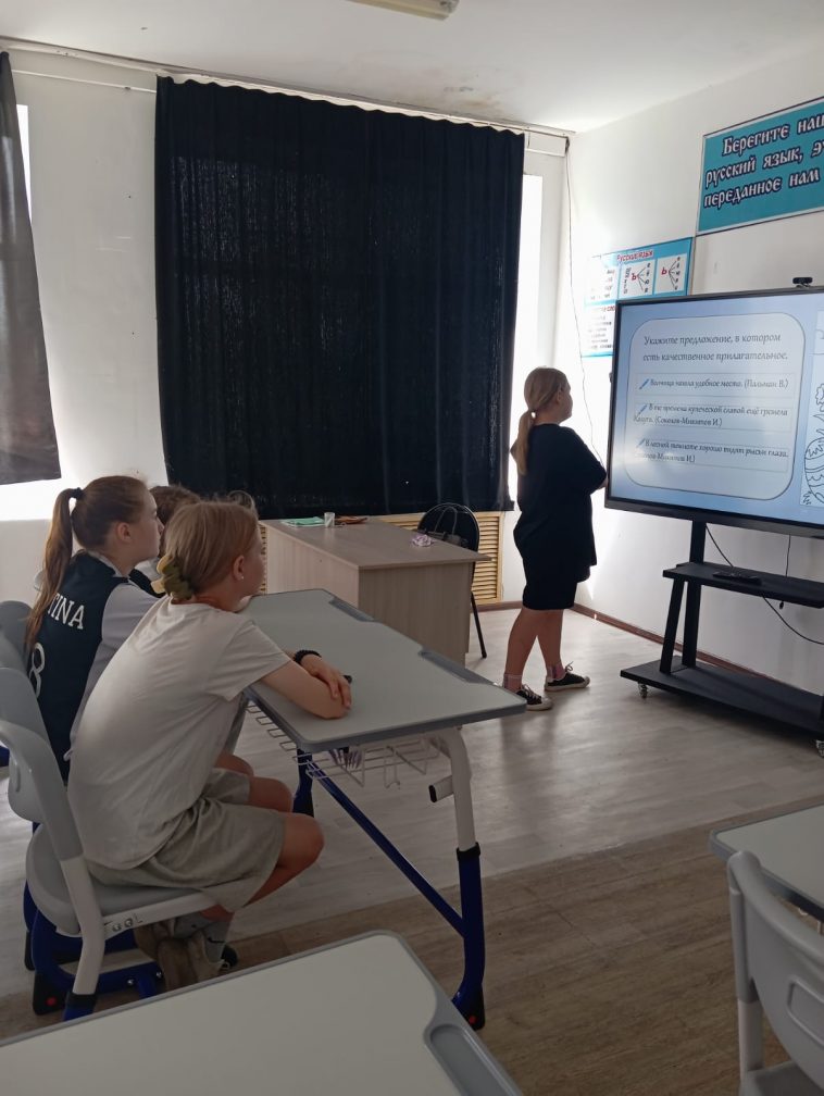 19.06.2025 "Мариновка аулының N1 ЖББМ" КММ-де лингвистикалық мектепте сабақ өтті. Балалар сын есімдердің разрядтарын, түрлі орфографияларды ойын түрінде қайталады.