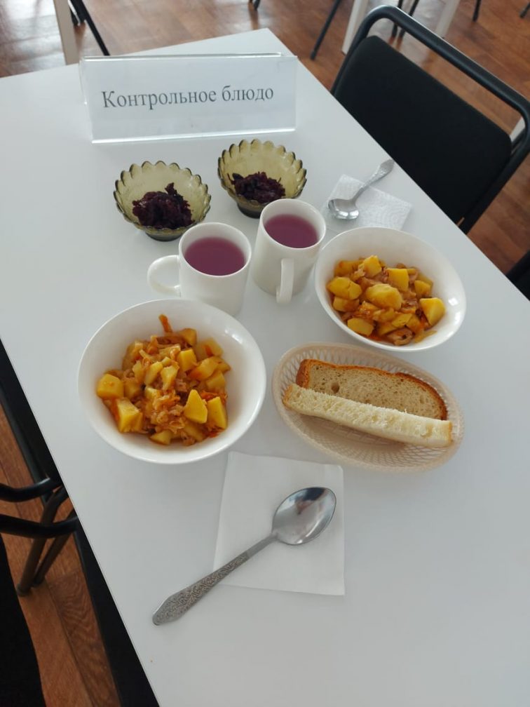 Үйде қуырылған ет, мейіз қосылған қызылша салаты, кисель, нан