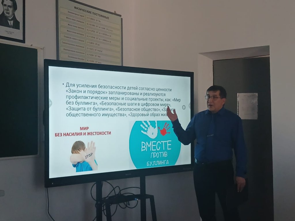 25.09.2025 "Мариновка ауылының №1 ЖББМ" КММ директоры Б. Шинжанов мектептің педагогикалық ұжымымен "Баланың қауіпсіздігі - қоғамның басымдығы" тақырыбында кеңес өткізді. Кеңес барысында "Балалар және әлеуметтік желілер", "Біртұтас тәрбие " бағдарламасының құндылықтары, "Заң және тәртіп " құндылығы негізінде іс-шаралар мен алдын алу шараларын жүргізу мәселелері қаралды. Сондай ақ қауіпсіздік сабақтарын өткізу және буллингтің көрінісін ерте анықтау әдістемесі туралы мәселе айтылды.