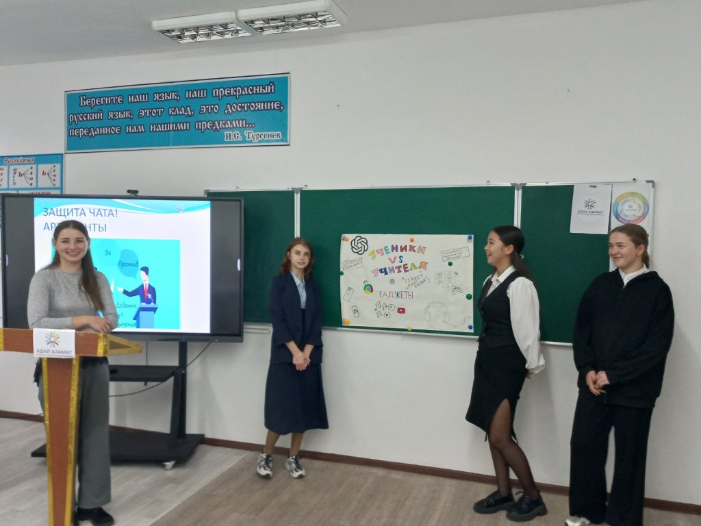 "Адал азамат" құндылық - "Бірлік және ынтымақтастық" бағдарламасын жүзеге асыру аясында "Мариновка ауылының №1 ЖББМ" КММ-де "Аманат" пікірсайыс клубының "Заманауи технологияларды кім жақсы басқарады– оқушылар немесе мұғалімдер?" тақырыпта мұғалімдер күніне арналған  отырысы болып өтті.  Іс-шараға практикалық сабақ өткізген оқушылар командасы мен мұғалімдер командасы қатысып, әртүрлі пайдалы сайттар, бағдарламалар, чаттар, жасанды интеллект құралдары туралы әңгімеледі, осылайша кәсіби құзыреттілікті арттыруға, жұмыстың жаңа әдістерін игеруге және тәжірибе алмасу мүмкіндіктерін кеңейтуге ықпал етті.