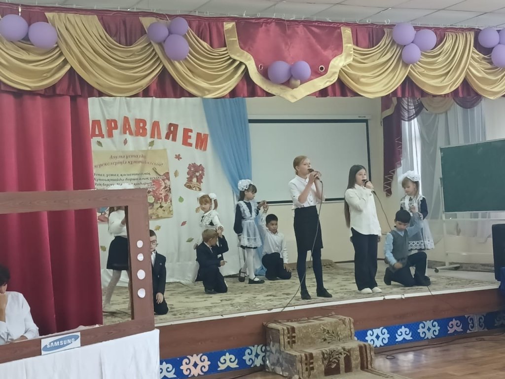 Балалар мектеп өмірінен өлеңдер, әндер, билер мен көріністерде мұғалімдерге ризашылықтарын білдірді. Сахнада шағын орталықтың балалары, 1-11 сынып оқушылары, оқытушылар өнер көрсетті. Мереке барлығына жақсы көңіл-күй мен күлкі сыйлады.