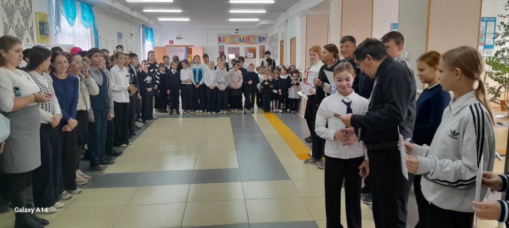 15 қазанда "Мариновка ауылының №1 ЖББМ" КММ-де жалпы мектептік желі өтті, онда 5-6 сыныптар, пәндік олимпиадалар, сондай-ақ спорттық жарыстар арасында "Алтын сақа" байқауының қорытындысы шығарылды, онда балалар жалпы командалық есепте 2 жүлделі орынға ие болды. Барлық жеңімпаздар құрмет грамоталарымен марапатталды.