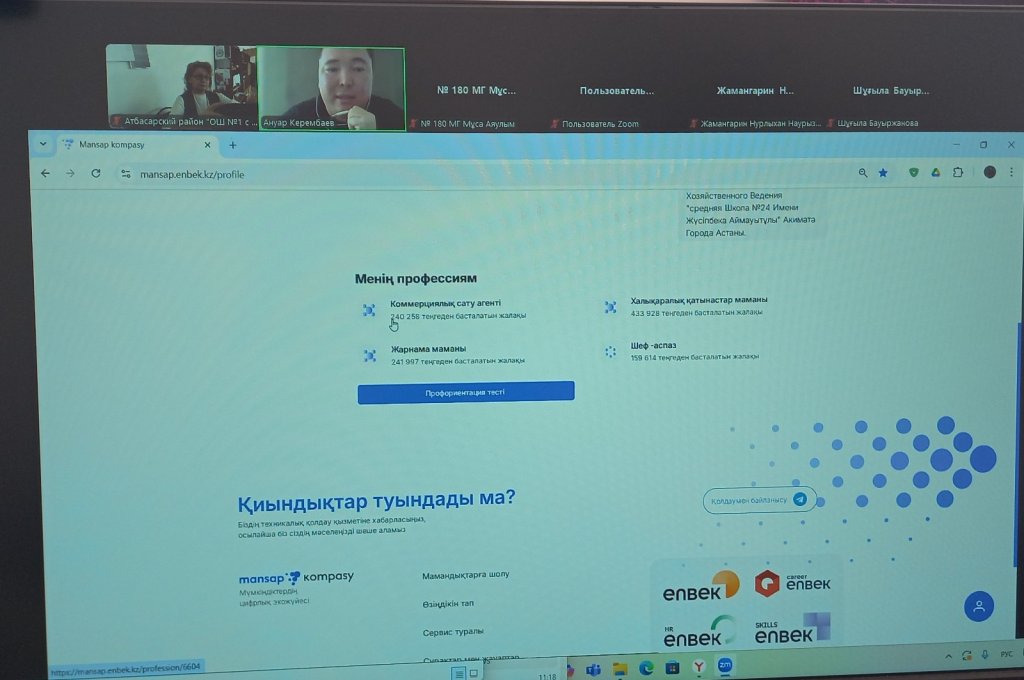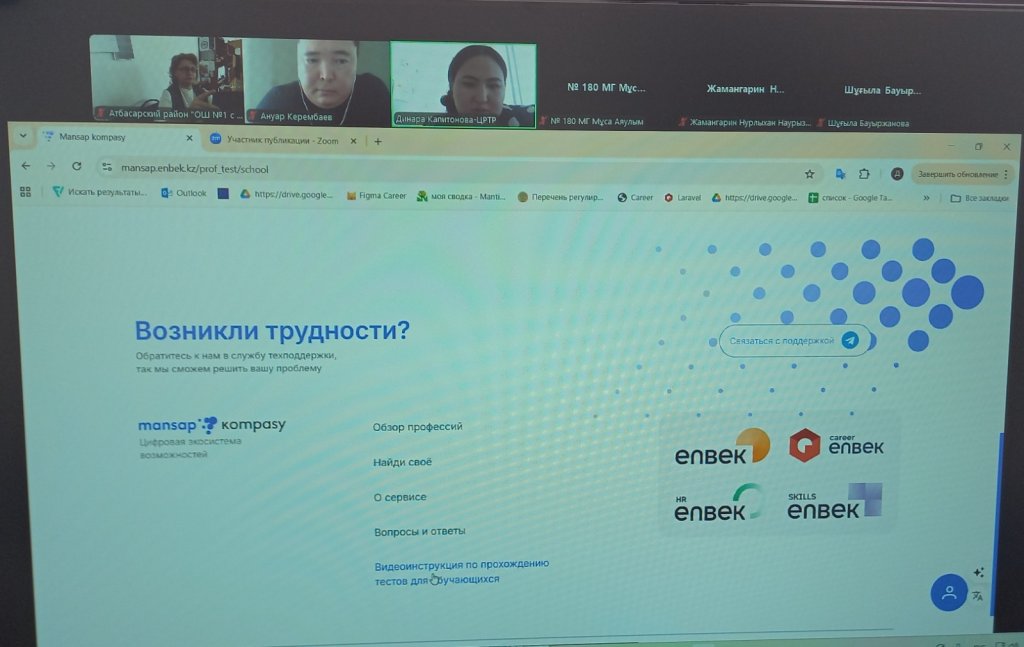 21 қазанда ZOOM платформасында жоғары сынып оқушыларына арналған кәсіптік бағдар беру платформасы бойынша "Mansap Kompasy" тақырыбында республикалық конференция өтті. "Мариновка ауылының №1 ЖББМ"/нің директорының орынбасары И. П. Холод конференцияның арқасында одан әрі жұмыс істеу үшін көптеген пайдалы ақпарат пен мамандықтар әлемінде өзін-өзі анықтау бойынша оқушылармен жұмыс істеу үшін ұсыныстар алды.
